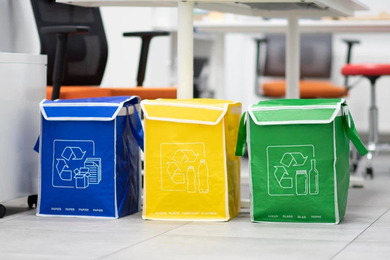 Torby do segregacji odpadów RESPECT są wykonane z wytrzymałego polipropylenu. Są doskonałym wyborem dla osób dbających o środowisko. Torby posiadają klapy zapinane na rzep i dodatkowe rzepy po bokach umożliwiające ich złączenie.