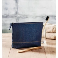 Kosmetyczka z zamkiem błyskawicznym, 50% bawełna z recyklingu i 50% bawełna barwiony jeans. 250 gr/m².