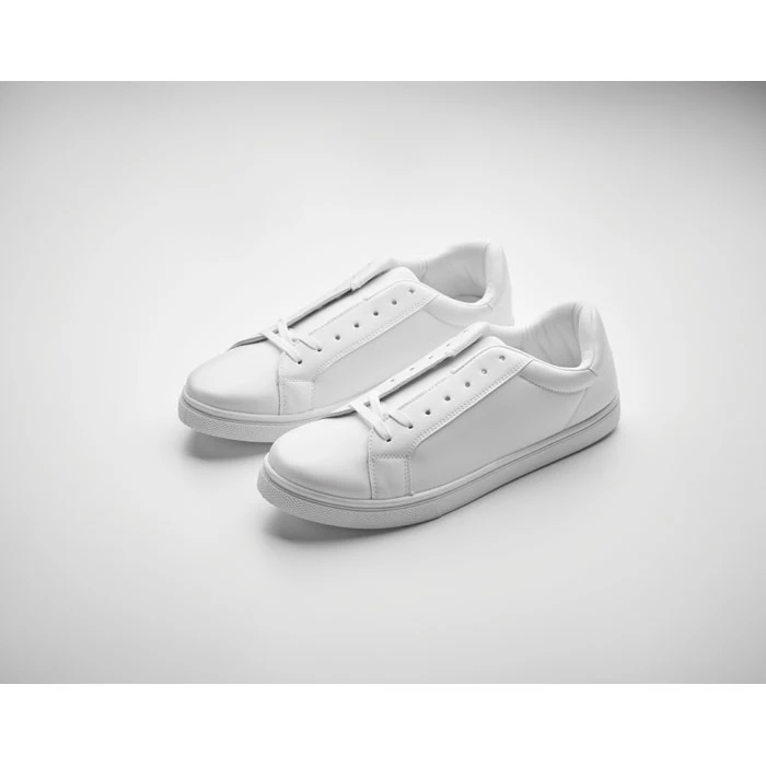 Lekkie trampki z PU z gumową podeszwą i poliestrowymi sznurówkami. Rozmiar: 45 w białym pudełku.
