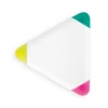 Zakreślacz z polipropylenu w kształcie trójkąta, 3 kolory: żółty, różowy i zielony. 79 x 79 x 13 mm