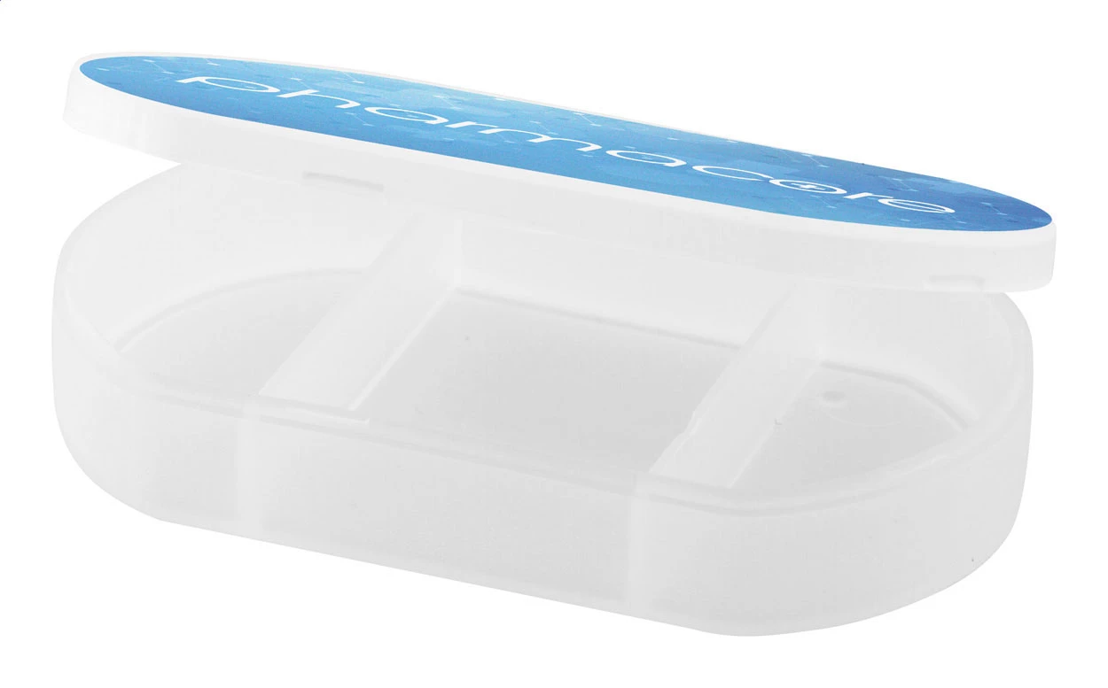 Plastikowe pudełko na tabletki z 3 przegrodami.