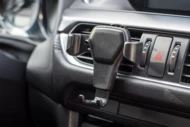 CUERO to bardzo wygodny uchwyt grawitacyjny na telefon do montażu w kratce wentylacyjnej samochodu. Kiedy telefon znajdzie się w uchwycie, siła nacisku powoduje, że ramiona uchwytu zaciskają się, a urządzenie jest skutecznie zabezpieczone przed upadkiem. Uchwyty od wewnątrz pokryte są gumą, co poprawia stabilność chwytu. Uchwyt pasuje do telefonów o szerokości w przedziale 65-88 mm, telefon nie powinien znajdować się w etui. Dzięki imitacji powierzchni skórzanej świetnie zaprezentuje się w Twoim samochodzie.