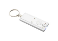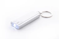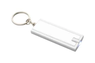 Brelok z recyklingowanego ABS z latarką LED i metalowym brelokiem. Z bateriami guzikowymi.