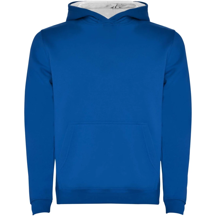 Dwukolorowa bluza z kapturem z podwójnego materiału. Wzmocnione kryte szwy w kołnierzu i kieszeń kangurka. Ściągacze 1x1 z elastanu w mankietach i pasie. Usuwalna metka.