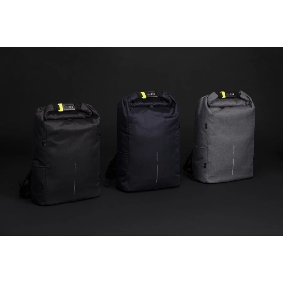 Plecak chroniący przed kieszonkowcami z ochroną RFID Urban Lite, zwijana przegroda główna i zamek szyfrowy wzmocniony stalą umożliwiający całkowite zamknięcie plecaka, zamek może posłużyć również do przypięcia plecaka do stałego obiektu, ukryte kieszenie do przechowywania dokumentów i kart kredytowych z tyłu torby oraz w pasku na ramię z ochroną RFID, kieszeń boczna, odpinana elastyczna siatka na sprzęt sportowy w komplecie, wewnątrz usztywnione przegrody na laptopa 15,6" lub tablet do 12,9", siateczkowe kieszenie na inne przedmioty osobiste, wzór zastrzeżony®, ślad węglowy produktu: 8,93 kg CO2