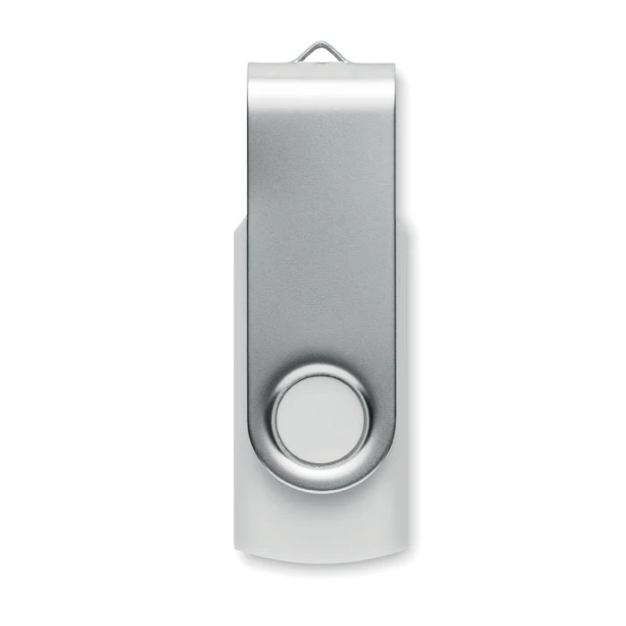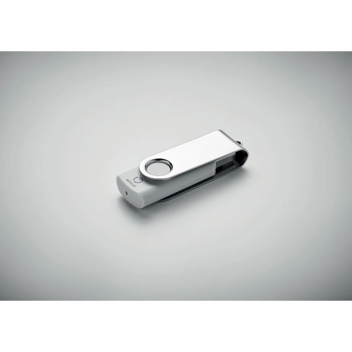 Pamięć USB 2.0 o pojemności 16 GB z ABS z recyklingu z ochronną osłoną i z białym wykończeniem. Obróć metalową osłonę i podłącz do portu USB.