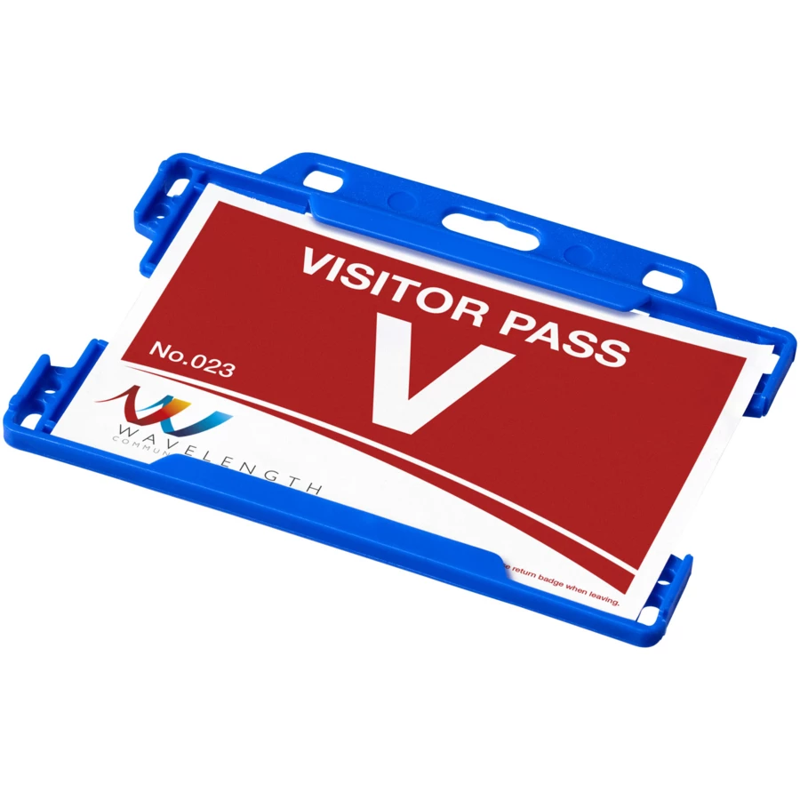 Etui na karty w orientacji poziomej wykonane z tworzyw sztucznych pochodzących z recyklingu. Idealne na wystawy, wydarzenia networkingowe oraz w miejscach pracy. Nadaje się do standardowych wizytówek i wejściówek wielkości karty kredytowej. Ze względu na charakter tworzyw sztucznych pochodzących z recyklingu odcienie kolorów mogą się nieznacznie różnić i mogą występować kolorowe plamki. Wyprodukowano w Wielkiej Brytanii.