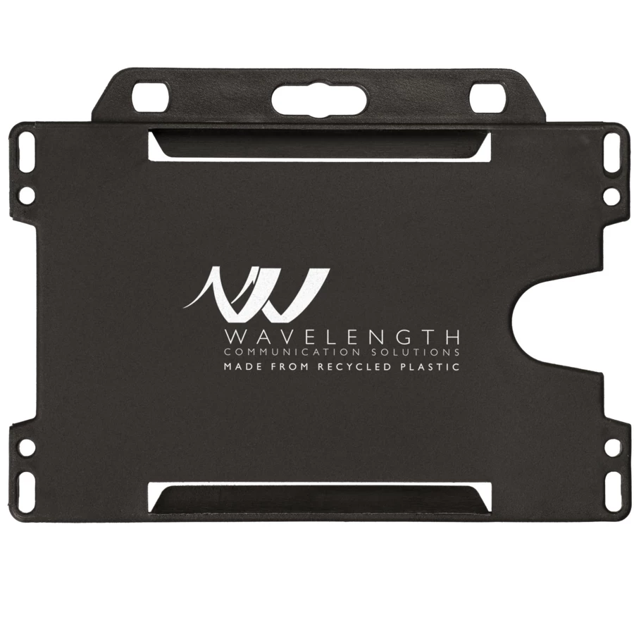 Etui na karty w orientacji poziomej wykonane z tworzyw sztucznych pochodzących z recyklingu. Idealne na wystawy, wydarzenia networkingowe oraz w miejscach pracy. Nadaje się do standardowych wizytówek i wejściówek wielkości karty kredytowej. Ze względu na charakter tworzyw sztucznych pochodzących z recyklingu odcienie kolorów mogą się nieznacznie różnić i mogą występować kolorowe plamki. Wyprodukowano w Wielkiej Brytanii.