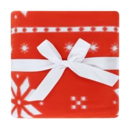 Koc świąteczny z polaru RPET, antypillingowy, poliester RPET 200 g/m2. Zapakowany w wstążkę i kartę papierową do nadruku.