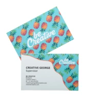 100 szt. personalizowanych wizytówek z grafiką drukowaną w full kolorze po obu stronach. Matowy biały papier o gramaturze 350 g/m². W białym, papierowym pudełku.