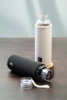 Butelka szklana z recyklingu z wieczkiem z tworzywa sztucznego PS, silikonowym paskiem do noszenia i pokrowcem z neoprenu RPET, 550 ml. Nie nadaje się do napojów gazowanych.