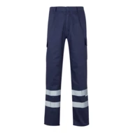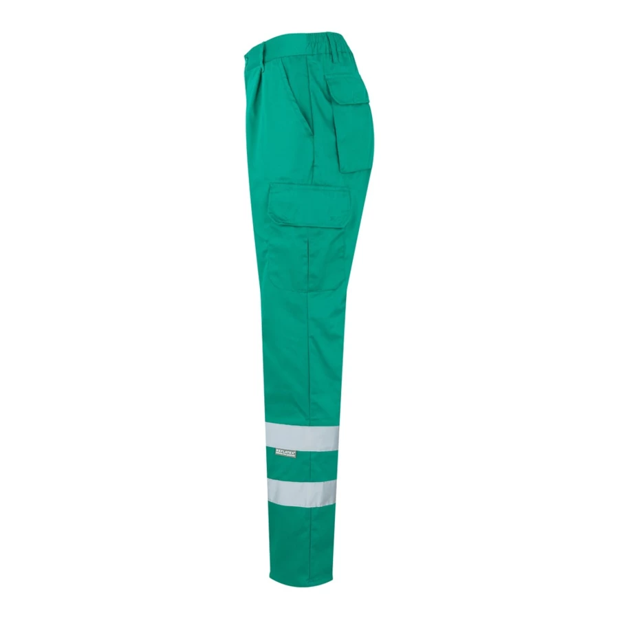 Spodnie diagonalne z wieloma kieszeniami (200 g/m²), wykonane z bawełny (35%) i poliestru (65%). Z elastycznym pasem, odblaskowymi paskami u dołu spodni i sześcioma kieszeniami (2 kieszenie francuskie, 2 kieszenie boczne i 2 kieszenie tylne). Produkt zgodny z rozporządzeniem UE 2016/425, certyfikowany przez EN17353 i klasę Nº B2. Rozmiar: S, M, L, XL, 2XL, 3XL