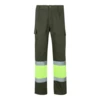 Spodnie dwukolorowe, diagonalne (210g/m²), na podszewce, z wieloma kieszeniami, z bawełny (20%) i poliestru (80%). Z gumką w pasie, z odblaskowymi paskami u dołu spodni. Zawiera sześć kieszeni (2 Kieszenie francuskie, 2 boczne kieszenie mieszkowe i 2 tylne). Produkt zgodny z rozporządzeniem UE 2016/425, certyfikowany przez EN20471 i klasę Nº 1. Rozmiar: S, M, L, XL, 2XL, 3XL