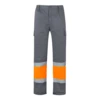 Spodnie dwukolorowe, diagonalne (210g/m²), na podszewce, z wieloma kieszeniami, z bawełny (20%) i poliestru (80%). Z gumką w pasie, z odblaskowymi paskami u dołu spodni. Zawiera sześć kieszeni (2 Kieszenie francuskie, 2 boczne kieszenie mieszkowe i 2 tylne). Produkt zgodny z rozporządzeniem UE 2016/425, certyfikowany przez EN20471 i klasę Nº 1. Rozmiar: S, M, L, XL, 2XL, 3XL