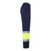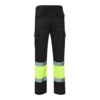 Spodnie dwukolorowe, diagonalne (210g/m²), na podszewce, z wieloma kieszeniami, z bawełny (20%) i poliestru (80%). Z gumką w pasie, z odblaskowymi paskami u dołu spodni. Zawiera sześć kieszeni (2 Kieszenie francuskie, 2 boczne kieszenie mieszkowe i 2 tylne). Produkt zgodny z rozporządzeniem UE 2016/425, certyfikowany przez EN20471 i klasę Nº 1. Rozmiar: S, M, L, XL, 2XL, 3XL