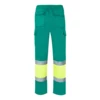 Spodnie dwukolorowe, diagonalne (210g/m²), na podszewce, z wieloma kieszeniami, z bawełny (20%) i poliestru (80%). Z gumką w pasie, z odblaskowymi paskami u dołu spodni. Zawiera sześć kieszeni (2 Kieszenie francuskie, 2 boczne kieszenie mieszkowe i 2 tylne). Produkt zgodny z rozporządzeniem UE 2016/425, certyfikowany przez EN20471 i klasę Nº 1. Rozmiar: S, M, L, XL, 2XL, 3XL