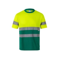 Dwukolorowa koszulka techniczna w kształcie ptaka (140g/m²), z poliestru (100%). Krótkie rękawy, okrągły dekolt wykończony ściągaczem w kontrastowym kolorze oraz odblaskowe paski na tułowiu i rękawach. Produkt zgodny z rozporządzeniem UE 2016/425, certyfikowany przez EN20471 i klasę Nº 1. Rozmiar: S, M, L, XL, 2XL, 3XL
