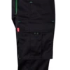 Dwukolorowe, elastyczne spodnie z wieloma kieszeniami (240g/m²), wykonane z bawełny (46%), EME (38%) i poliestru (16%). Krój slim fit, elastyczny pas i kontrastowy kolor klinów, ściągaczy i szwów. Zawiera sześć kieszeni (2 kieszenie francuskie, 2 boczne kieszenie z klinem i 2 tylne kieszenie z klinem). Size: 34, 36, 38, 40, 42, 44, 46, 48, 50, 52, 54, 56, 58, 60