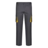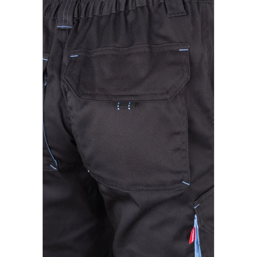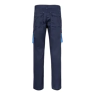 Dwukolorowe, elastyczne spodnie z wieloma kieszeniami (240g/m²), wykonane z bawełny (46%), EME (38%) i poliestru (16%). Krój slim fit, elastyczny pas i kontrastowy kolor klinów, ściągaczy i szwów. Zawiera sześć kieszeni (2 kieszenie francuskie, 2 boczne kieszenie z klinem i 2 tylne kieszenie z klinem). Size: 34, 36, 38, 40, 42, 44, 46, 48, 50, 52, 54, 56, 58, 60