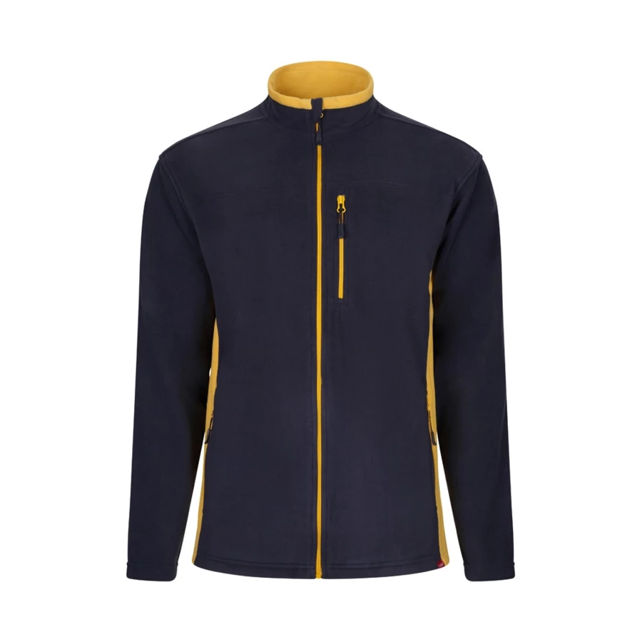 Dwukolorowa kurtka polarowa (220 g/m²) z poliestru (100%). Tkanina z mikrofibry. Z centralnym zamkiem błyskawicznym, kontrastowym kolorem po bokach, po wewnętrznej stronie kołnierza i zamków błyskawicznych. Z pięcioma kieszeniami (3 kieszenie zewnętrzne, z zamkiem błyskawicznym i dwie kieszenie wewnętrzne). Rozmiar: XS, S, M, L, XL, 2XL, 3XL