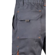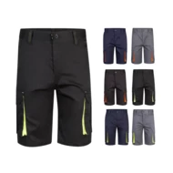 Dwukolorowe, rozciągliwe bermudy z wieloma kieszeniami (240 g/m²), wykonane z bawełny (46%), EME (38%) i poliestru (16%). Z elastycznym pasem, kontrastowymi wstawkami, patką i przeszyciami oraz wzmocnieniem z materiału z tyłu. Zawiera sześć kieszeni (2 kieszenie francuskie, 2 boczne kieszenie z klinem i 2 tylne kieszenie z klinem). Size: 34, 36, 38, 40, 42, 44, 46, 48, 50, 52, 54, 56, 58, 60