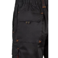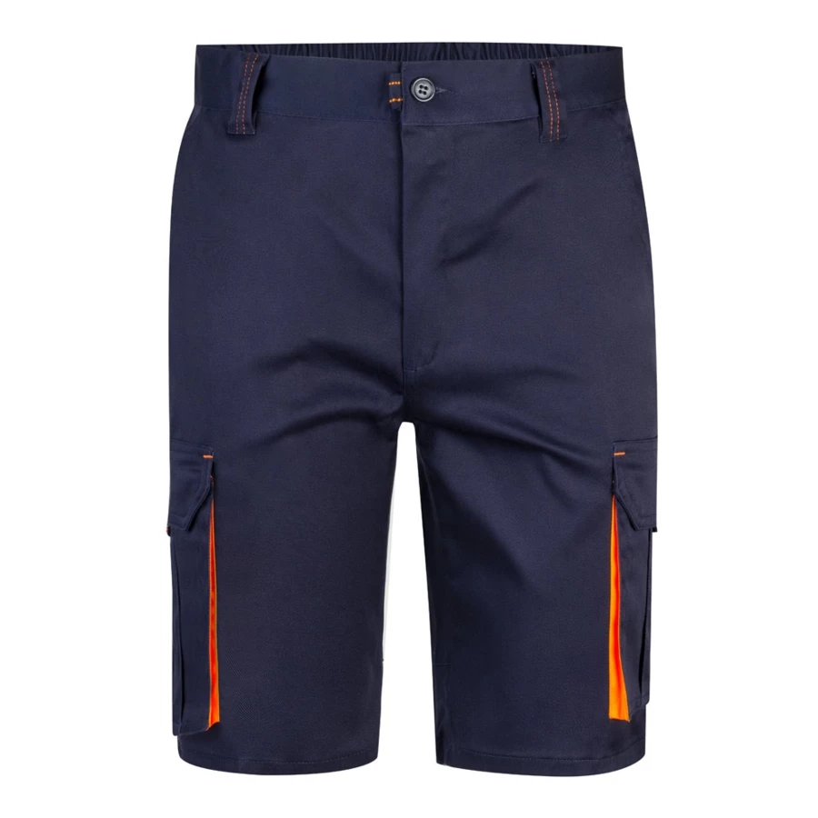 Dwukolorowe, rozciągliwe bermudy z wieloma kieszeniami (240 g/m²), wykonane z bawełny (46%), EME (38%) i poliestru (16%). Z elastycznym pasem, kontrastowymi wstawkami, patką i przeszyciami oraz wzmocnieniem z materiału z tyłu. Zawiera sześć kieszeni (2 kieszenie francuskie, 2 boczne kieszenie z klinem i 2 tylne kieszenie z klinem). Size: 34, 36, 38, 40, 42, 44, 46, 48, 50, 52, 54, 56, 58, 60