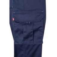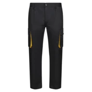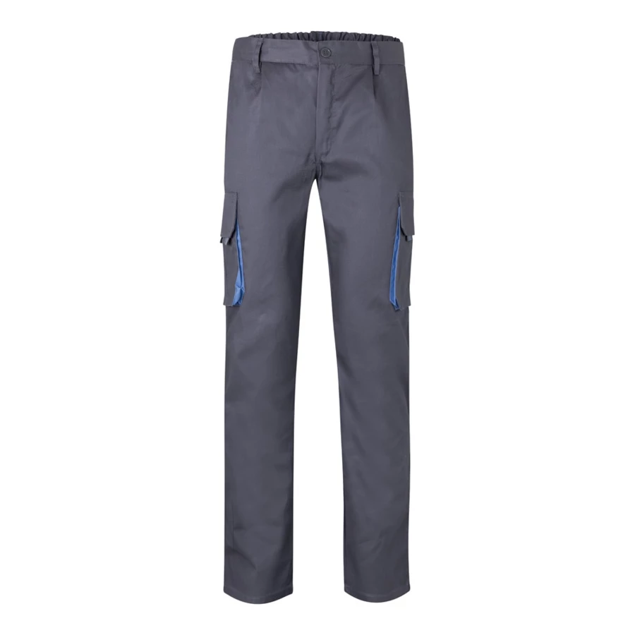 Dwukolorowe spodnie z wieloma kieszeniami o diagonalnym splocie (200g/m²), z bawełny (35%) i poliestru (65%). Z elastycznym pasem i kontrastowym kolorem klinów, ściągaczy i szwów. Zawiera sześć kieszeni: (2 kieszenie francuskie, 2 boczne kieszenie z klinem i 2 tylne kieszenie z klinem). Size: 34, 36, 38, 40, 42, 44, 46, 48, 50, 52, 54, 56, 58, 60