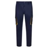 Dwukolorowe spodnie z wieloma kieszeniami o diagonalnym splocie (200g/m²), z bawełny (35%) i poliestru (65%). Z elastycznym pasem i kontrastowym kolorem klinów, ściągaczy i szwów. Zawiera sześć kieszeni: (2 kieszenie francuskie, 2 boczne kieszenie z klinem i 2 tylne kieszenie z klinem). Size: 34, 36, 38, 40, 42, 44, 46, 48, 50, 52, 54, 56, 58, 60