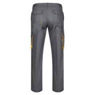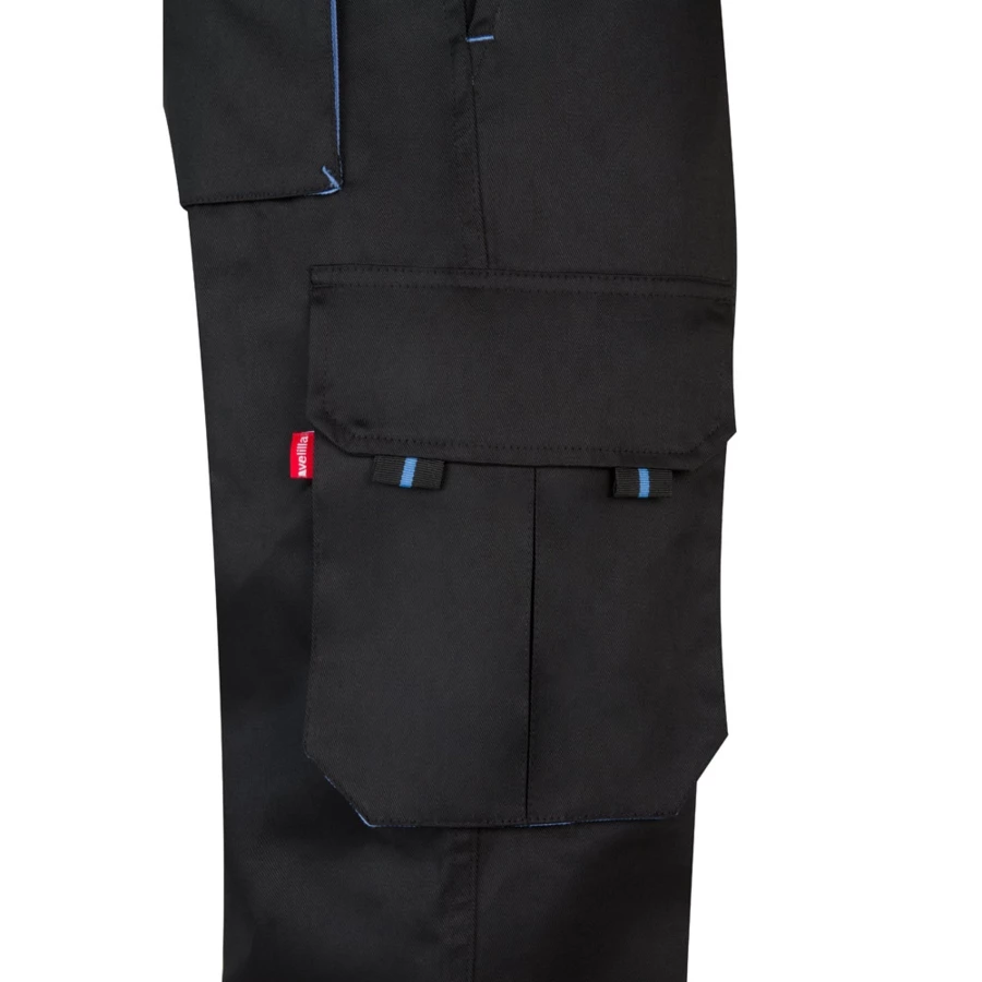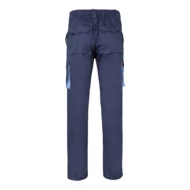 Dwukolorowe spodnie z wieloma kieszeniami o diagonalnym splocie (200g/m²), z bawełny (35%) i poliestru (65%). Z elastycznym pasem i kontrastowym kolorem klinów, ściągaczy i szwów. Zawiera sześć kieszeni: (2 kieszenie francuskie, 2 boczne kieszenie z klinem i 2 tylne kieszenie z klinem). Size: 34, 36, 38, 40, 42, 44, 46, 48, 50, 52, 54, 56, 58, 60