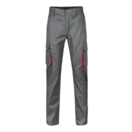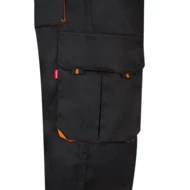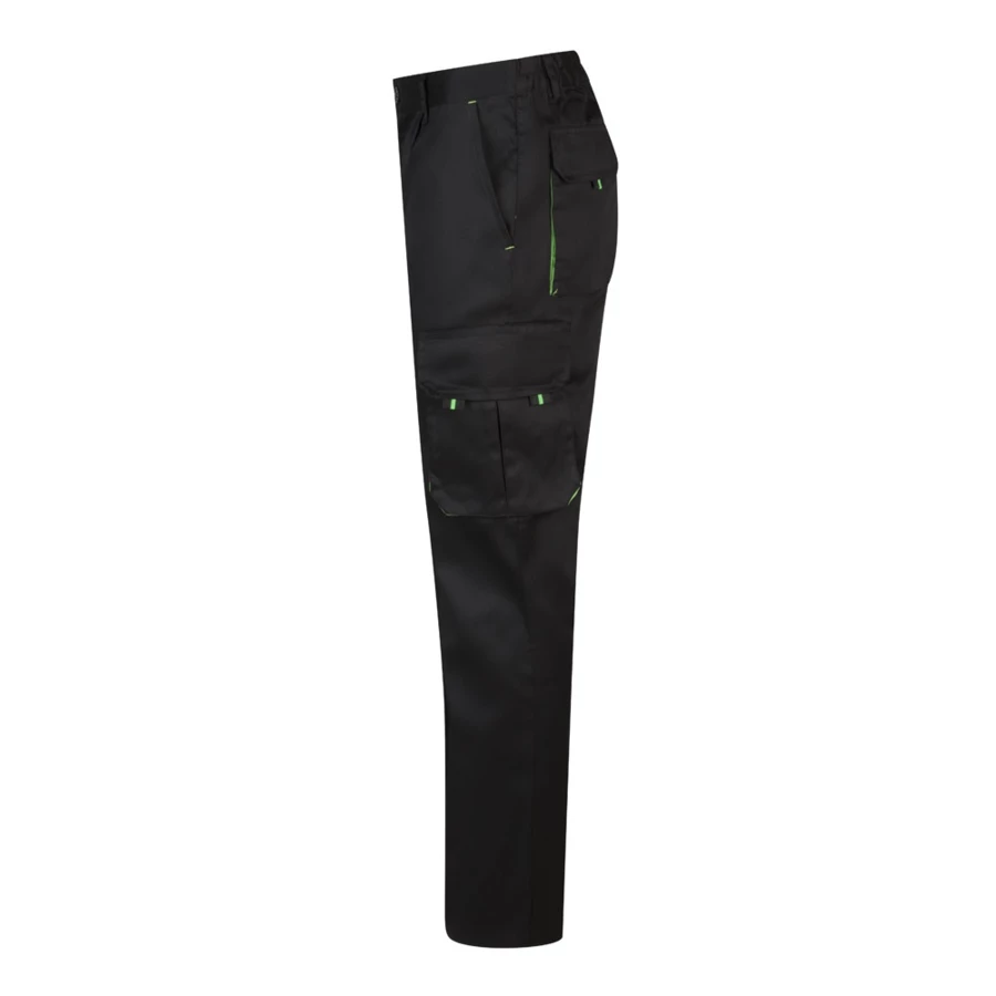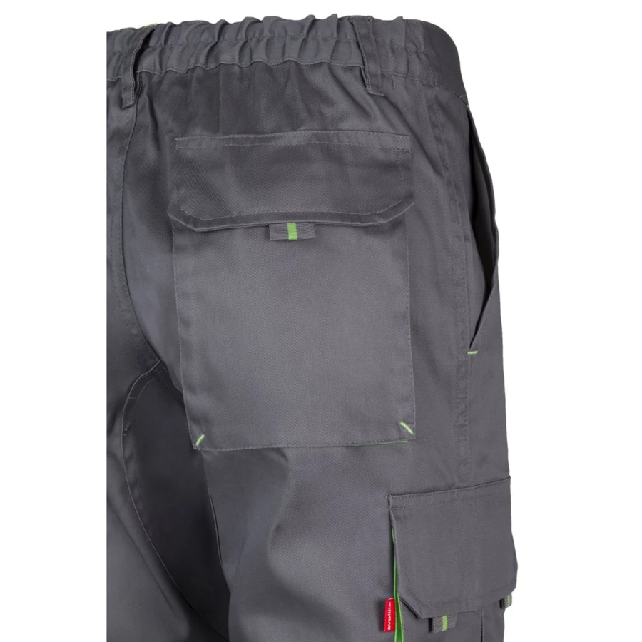 Dwukolorowe spodnie z wieloma kieszeniami o diagonalnym splocie (200g/m²), z bawełny (35%) i poliestru (65%). Z elastycznym pasem i kontrastowym kolorem klinów, ściągaczy i szwów. Zawiera sześć kieszeni: (2 kieszenie francuskie, 2 boczne kieszenie z klinem i 2 tylne kieszenie z klinem). Size: 34, 36, 38, 40, 42, 44, 46, 48, 50, 52, 54, 56, 58, 60