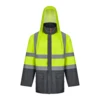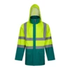 Dwukolorowa parka 4 w 1 (180 g/m²), z poliestru (100%) z powłoką PU. Cztery części w jednym: parka, płaszcz przeciwdeszczowy, kurtka i kamizelka.Parka/płaszcz przeciwdeszczowy: z ukrytym centralnym zamkiem błyskawicznym z plisą, która zapinana jest na rzep, odblaskowe paski na tułowiu, ramionach i rękawach oraz ukryty kaptur, z dwiema dolnymi kieszeniami.Kurtka/kamizelka: z centralnym zamkiem błyskawicznym, odblaskowe paski na tułowiu i ramionach, ściągacze przy mankietach i odpinane rękawy. Z trzema kieszeniami (2 dolne kieszenie i 1 wewnętrzna). Produkt zgodny z rozporządzeniem UE 2016/425, certyfikowany zgodnie z normą EN20471 i klasą Nº 2. Rozmiar: S, M, L, XL, 2XL, 3XL