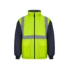 Dwukolorowa parka 4 w 1 (180 g/m²), z poliestru (100%) z powłoką PU. Cztery części w jednym: parka, płaszcz przeciwdeszczowy, kurtka i kamizelka.Parka/płaszcz przeciwdeszczowy: z ukrytym centralnym zamkiem błyskawicznym z plisą, która zapinana jest na rzep, odblaskowe paski na tułowiu, ramionach i rękawach oraz ukryty kaptur, z dwiema dolnymi kieszeniami.Kurtka/kamizelka: z centralnym zamkiem błyskawicznym, odblaskowe paski na tułowiu i ramionach, ściągacze przy mankietach i odpinane rękawy. Z trzema kieszeniami (2 dolne kieszenie i 1 wewnętrzna). Produkt zgodny z rozporządzeniem UE 2016/425, certyfikowany zgodnie z normą EN20471 i klasą Nº 2. Rozmiar: S, M, L, XL, 2XL, 3XL