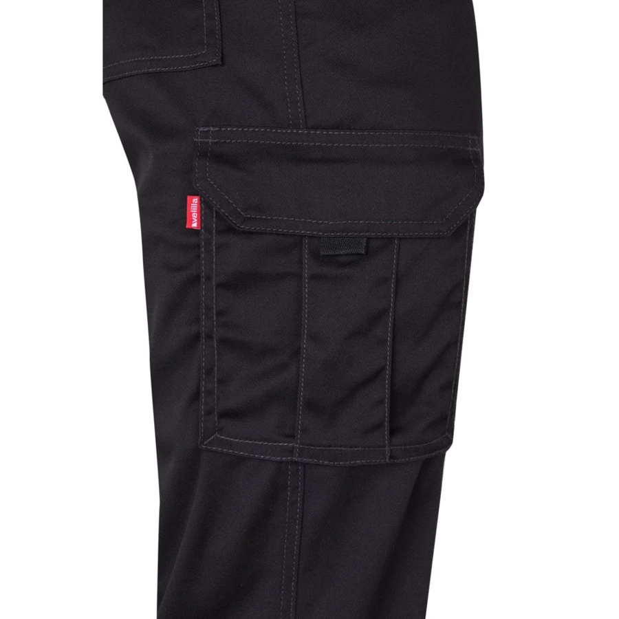 Elastyczne spodnie z wieloma kieszeniami (240 g/m²) z bawełny (46%), EME (38%) i poliestru (16%). Dopasowany krój, elastyczny pas i sześć kieszeni (2 kieszenie francuskie, 2 boczne kieszenie z klinem i 2 tylne kieszenie z klinem). Size: 34, 36, 38, 40, 42, 44, 46, 48, 50, 52, 54, 56, 58, 60, 62, 64