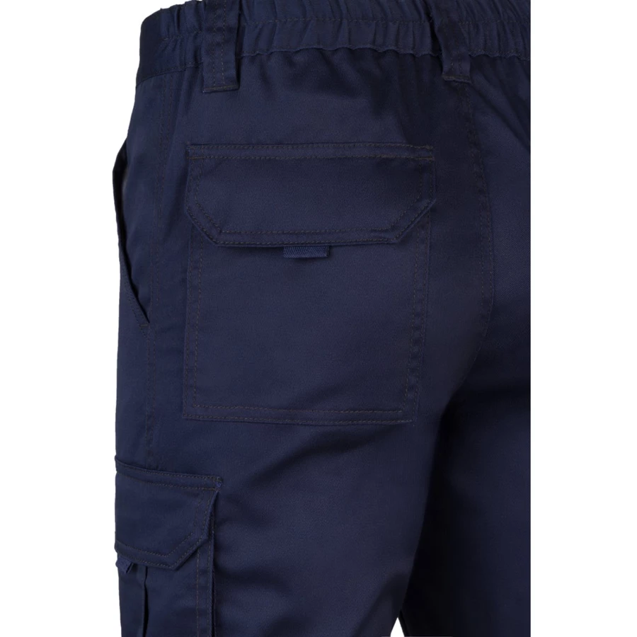Elastyczne spodnie z wieloma kieszeniami (240 g/m²) z bawełny (46%), EME (38%) i poliestru (16%). Dopasowany krój, elastyczny pas i sześć kieszeni (2 kieszenie francuskie, 2 boczne kieszenie z klinem i 2 tylne kieszenie z klinem). Size: 34, 36, 38, 40, 42, 44, 46, 48, 50, 52, 54, 56, 58, 60, 62, 64