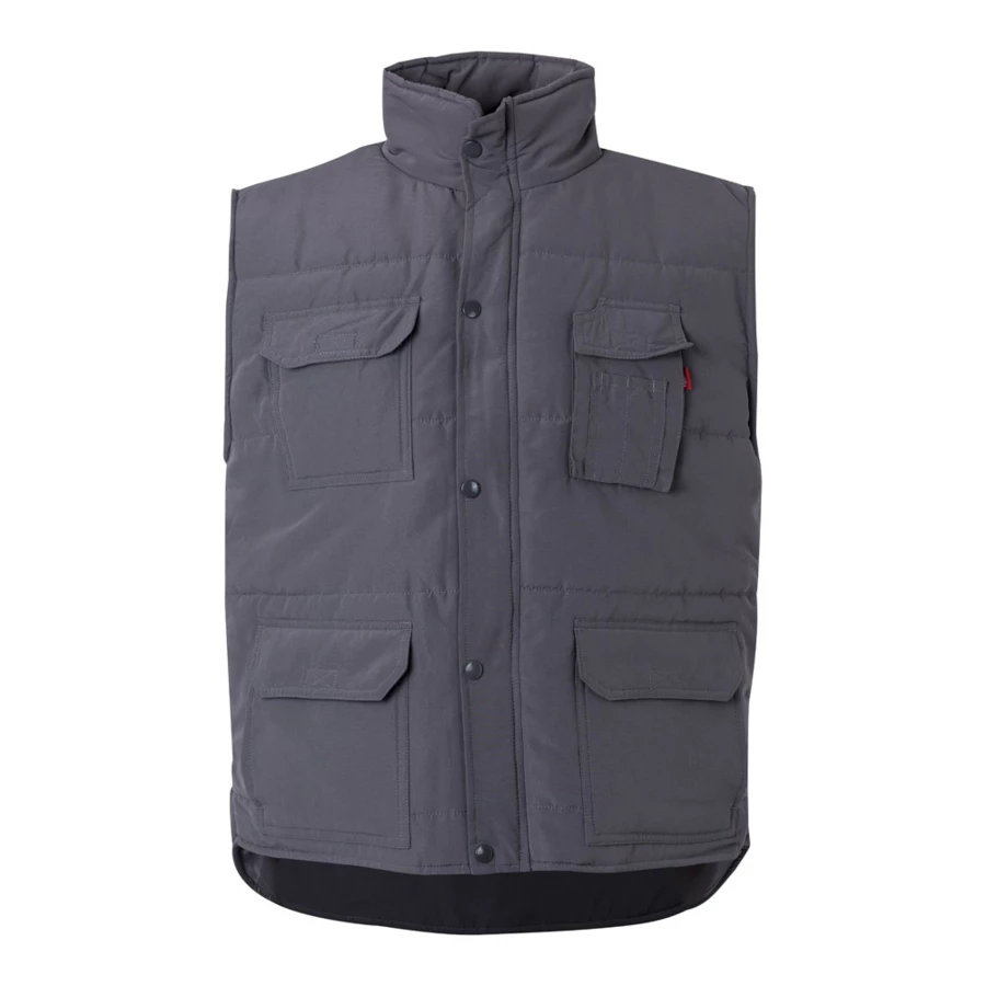 Kamizelka pikowana z wieloma kieszeniami (220 g/m²), poliester (100%). Zapinana na zamek błyskawiczny ukryty w plisie guzikowej. Elastyczny pas z boku i wiatrołap w dole pachowym. Z siedmioma kieszeniami (1 kieszeń na piersi, 2 kieszenie dolne, 2 kieszenie boczne i 1 kieszeń mieszkowa na piersi). Rozmiar: S, M, L, XL, 2XL, 3XL