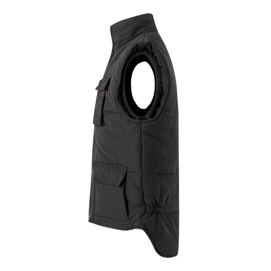 Kamizelka pikowana z wieloma kieszeniami (220 g/m²), poliester (100%). Zapinana na zamek błyskawiczny ukryty w plisie guzikowej. Elastyczny pas z boku i wiatrołap w dole pachowym. Z siedmioma kieszeniami (1 kieszeń na piersi, 2 kieszenie dolne, 2 kieszenie boczne i 1 kieszeń mieszkowa na piersi). Rozmiar: S, M, L, XL, 2XL, 3XL