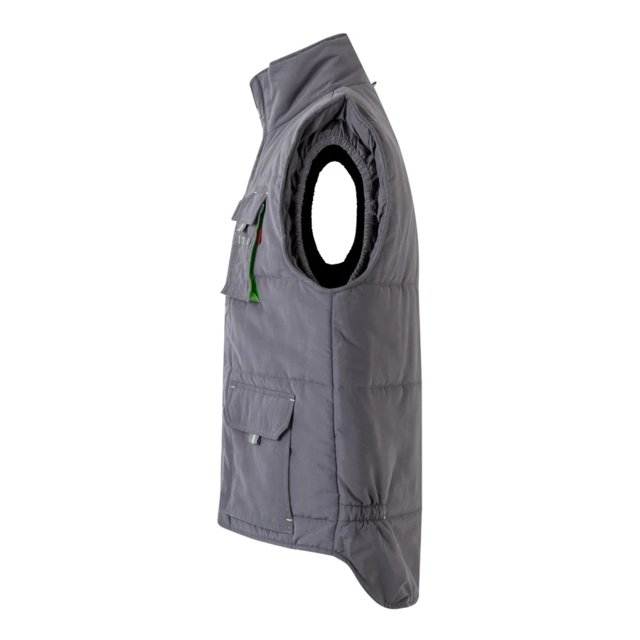 Dwukolorowa, pikowana kamizelka z wieloma kieszeniami (120 g/m²), wykonana z poliestru (100%). Zapięcie na zamek błyskawiczny, ukryte zapięcie na guziki. Elastyczny pas boczny, wiatrówka przy pachach. Mieszek, ściągacze i szwy w kontrastowym kolorze. Zawiera siedem kieszeni (2 kieszenie mieszkowe na klatce piersiowej, 2 dolne kieszenie mieszkowe, 2 kieszenie boczne, 1 kieszeń mieszkowa na klatce piersiowej i 1 kieszeń wewnętrzna). Rozmiar: S, M, L, XL, 2XL, 3XL