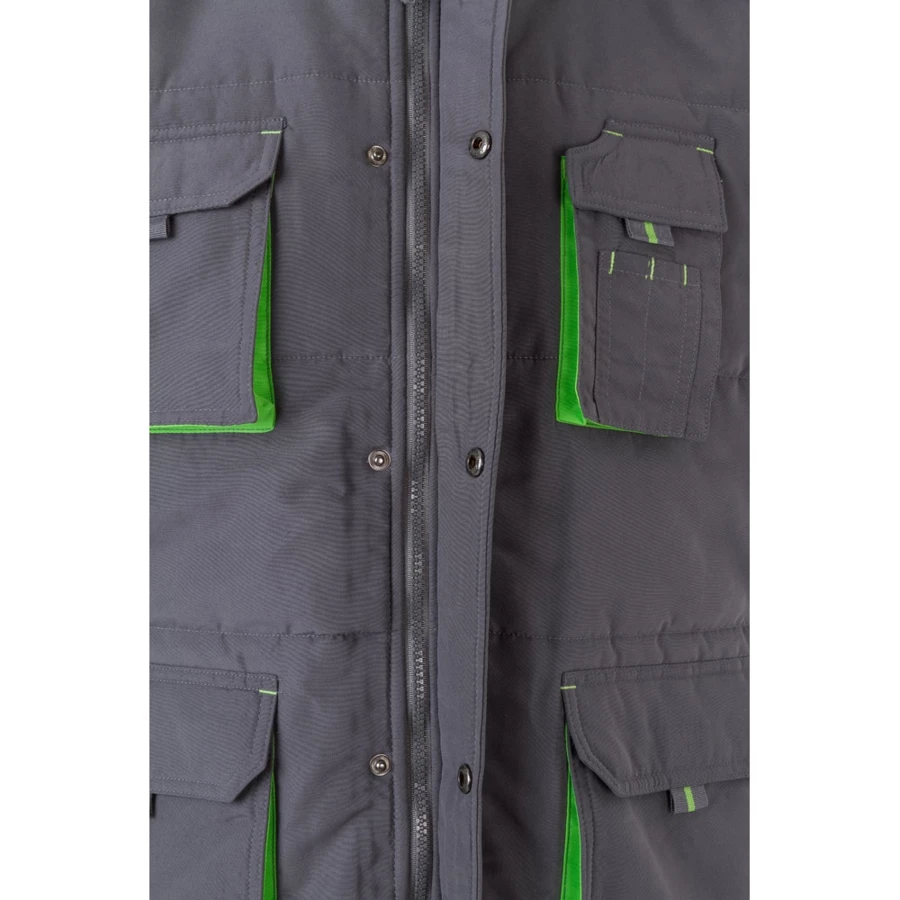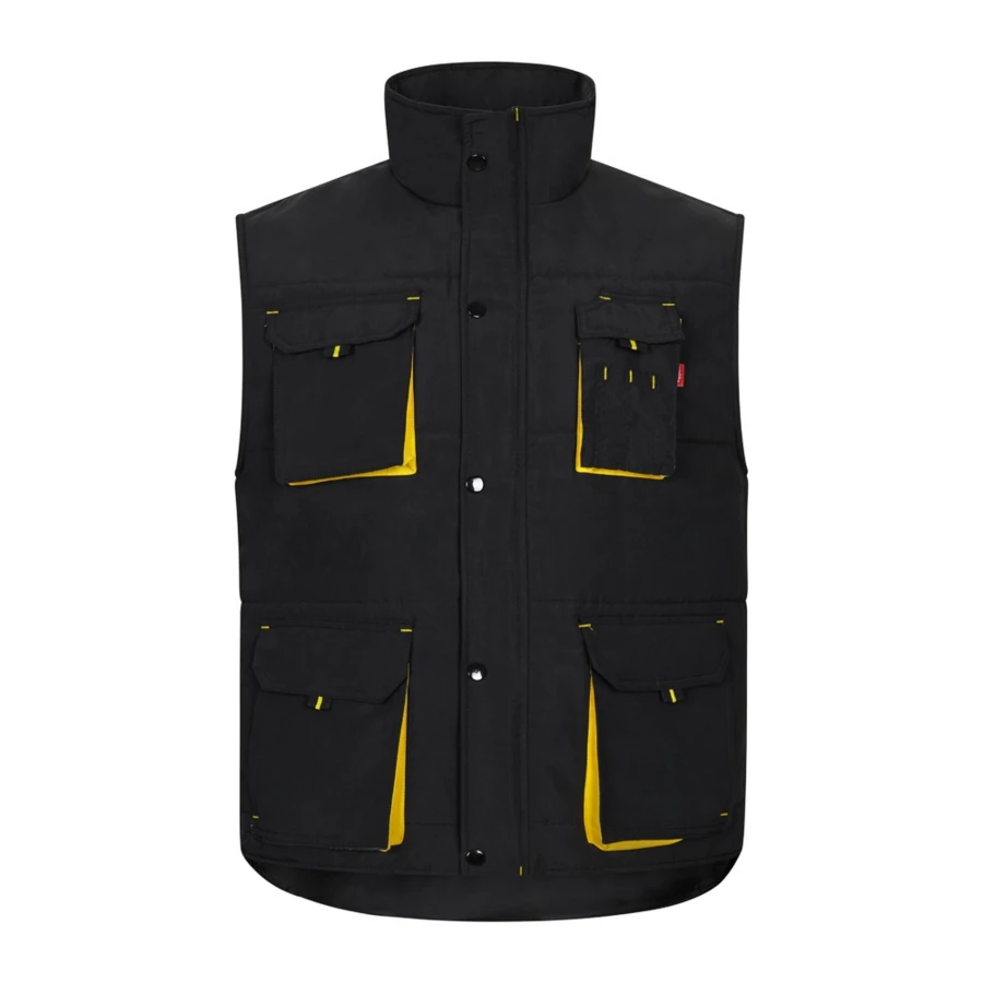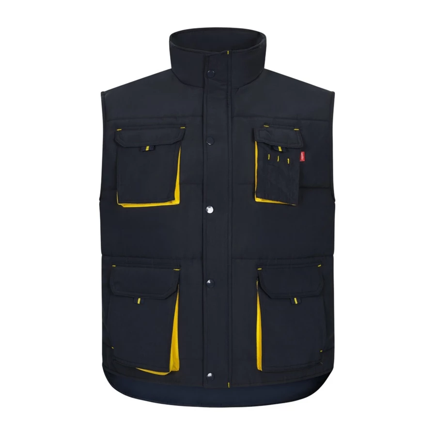 Dwukolorowa, pikowana kamizelka z wieloma kieszeniami (120 g/m²), wykonana z poliestru (100%). Zapięcie na zamek błyskawiczny, ukryte zapięcie na guziki. Elastyczny pas boczny, wiatrówka przy pachach. Mieszek, ściągacze i szwy w kontrastowym kolorze. Zawiera siedem kieszeni (2 kieszenie mieszkowe na klatce piersiowej, 2 dolne kieszenie mieszkowe, 2 kieszenie boczne, 1 kieszeń mieszkowa na klatce piersiowej i 1 kieszeń wewnętrzna). Rozmiar: S, M, L, XL, 2XL, 3XL
