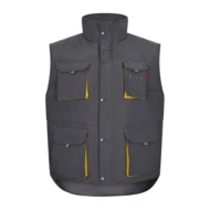 Dwukolorowa, pikowana kamizelka z wieloma kieszeniami (120 g/m²), wykonana z poliestru (100%). Zapięcie na zamek błyskawiczny, ukryte zapięcie na guziki. Elastyczny pas boczny, wiatrówka przy pachach. Mieszek, ściągacze i szwy w kontrastowym kolorze. Zawiera siedem kieszeni (2 kieszenie mieszkowe na klatce piersiowej, 2 dolne kieszenie mieszkowe, 2 kieszenie boczne, 1 kieszeń mieszkowa na klatce piersiowej i 1 kieszeń wewnętrzna). Rozmiar: S, M, L, XL, 2XL, 3XL