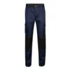 Dwukolorowe spodnie z wieloma kieszeniami o diagonalnym splocie (240 g/m²), z bawełny (35%) i poliestru (65%). Krój Slim Fit, elastyczny pas i wzmocnienia z materiału na kolanach i plecach. Zawiera sześć kieszeni (2 kieszenie francuskie, 2 boczne kieszenie z klinem i 2 tylne kieszenie z klinem). Size: 34, 36, 38, 40, 42, 44, 46, 48, 50, 52, 54, 56, 58, 60