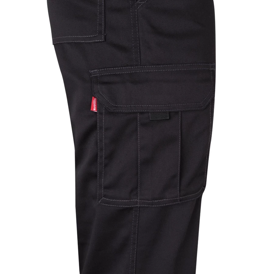 Elastyczne spodnie z wieloma kieszeniami (290 g/m²), wykonane z bawełny (46%), EME (38%) i poliestru (16%). Dopasowany krój, elastyczny pas i sześć kieszeni (2 kieszenie francuskie, 2 boczne kieszenie z klinem i 2 tylne kieszenie z klinem). Size: 34, 36, 38, 40, 42, 44, 46, 48, 50, 52, 54, 56, 58, 60