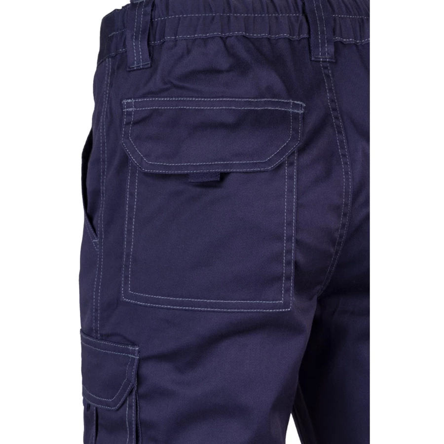 Elastyczne spodnie z wieloma kieszeniami (290 g/m²), wykonane z bawełny (46%), EME (38%) i poliestru (16%). Dopasowany krój, elastyczny pas i sześć kieszeni (2 kieszenie francuskie, 2 boczne kieszenie z klinem i 2 tylne kieszenie z klinem). Size: 34, 36, 38, 40, 42, 44, 46, 48, 50, 52, 54, 56, 58, 60