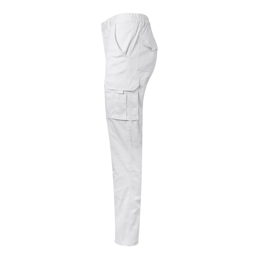 Elastyczne spodnie z wieloma kieszeniami (290 g/m²), wykonane z bawełny (46%), EME (38%) i poliestru (16%). Dopasowany krój, elastyczny pas i sześć kieszeni (2 kieszenie francuskie, 2 boczne kieszenie z klinem i 2 tylne kieszenie z klinem). Size: 34, 36, 38, 40, 42, 44, 46, 48, 50, 52, 54, 56, 58, 60