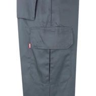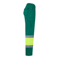 „Dwukolorowe spodnie z wieloma kieszeniami o diagonalnym splocie (210g/m²), wykonane z bawełny (20%) i poliestru (80%). Z gumką w pasie i odblaskowymi paskami u dołu spodni. Zawiera sześć kieszeni (2 francuskie, 2 boczne kieszenie mieszkowe i 2 tylne kieszenie mieszkowe). Produkt zgodny z rozporządzeniem UE 2016/425, certyfikowany przez EN20471 i klasę Nº 1. Rozmiar: S, M, L, XL, 2XL, 3XL