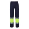 Dwukolorowe spodnie z wieloma kieszeniami o diagonalnym splocie (210g/m²), wykonane z bawełny (20%) i poliestru (80%). Z gumką w pasie i odblaskowymi paskami u dołu spodni. Zawiera sześć kieszeni (2 francuskie, 2 boczne kieszenie mieszkowe i 2 tylne kieszenie mieszkowe). Produkt zgodny z rozporządzeniem UE 2016/425, certyfikowany przez EN20471 i klasę Nº 1. Rozmiar: 4XL, 5XL
