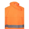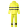 Kombinezon przeciwdeszczowy (130 g/m²), wykonany z poliestru (100%) z powłoką PU. Kurtka z centralnym zamkiem błyskawicznym, odblaskowymi paskami na tułowiu i rękawach oraz ukrytym kapturem w kołnierzu. Wewnętrzna siatka poliestrowa (100%) i metalowe oczka zapewniają oddychalność. Kurtka jest regulowana za pomocą stopera i ma 2 ukryte dolne kieszenie z klapką. Spodnie: elastyczny pas i zapięcie na guziki. Odblaskowe paski u dołu spodni i boczne otwory z klapką umożliwiające dostęp do kieszeni. Z regulowanymi guzikami na dole. Produkt zgodny z rozporządzeniem UE 2016/425, certyfikowany przez EN20471 i klasę Nº 3. Rozmiar: M, L, XL, 2XL, 3XL