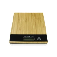 Waga kuchenna z bambusowym frontem, wyświetlacz LCD, funkcja tarowania, maksymalne obciążenie: 5 kg