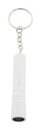 Plastikowa, mini latarka z 1 diodą LED, wykończeniem metalowym i metalowym brelokiem. Z baterią guzikową.