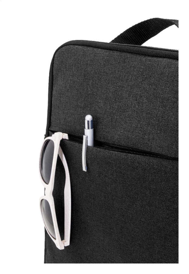 Wyściełana torba na ramię z poliestru 600D RPET na dokumenty lub laptopa z przegrodą na zamek błyskawiczny i przednią kieszenią na zamek błyskawiczny. Pasuje do laptopów o przekątnej do 15 cali. Z regulowanym paskiem na ramię w pozycji pionowej i poziomej. Z charakterystyczną metką RPET.