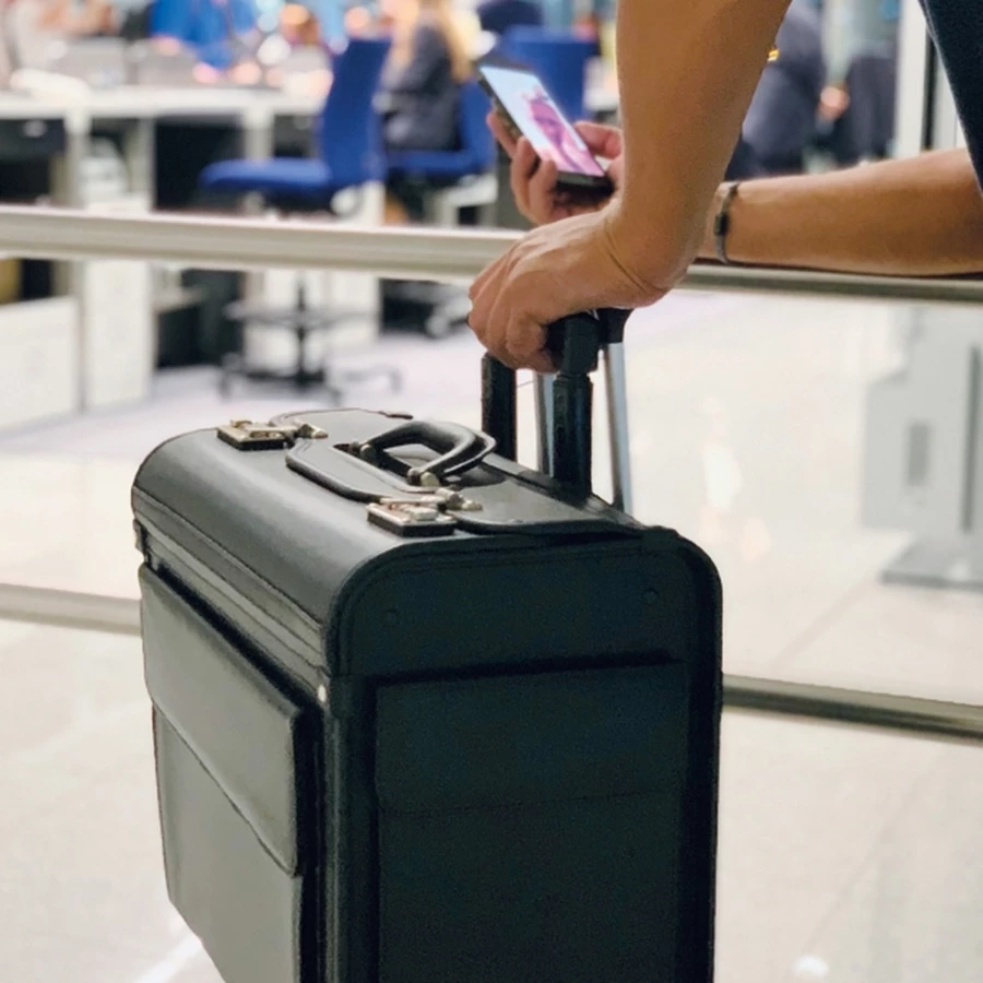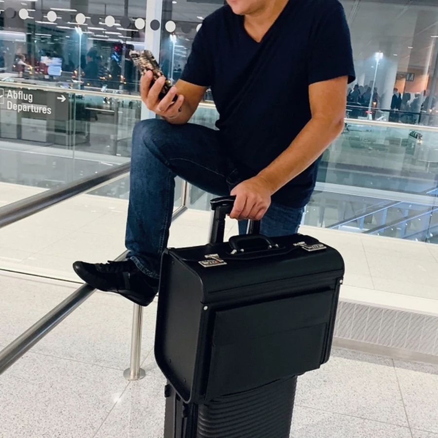 Walizka na dokumenty wykonana ze skóry ekologicznej, została wyposażona w kółka i długi teleskopowy uchwyt. Możliwość zamówienia zawieszki z grawerem 9086803.